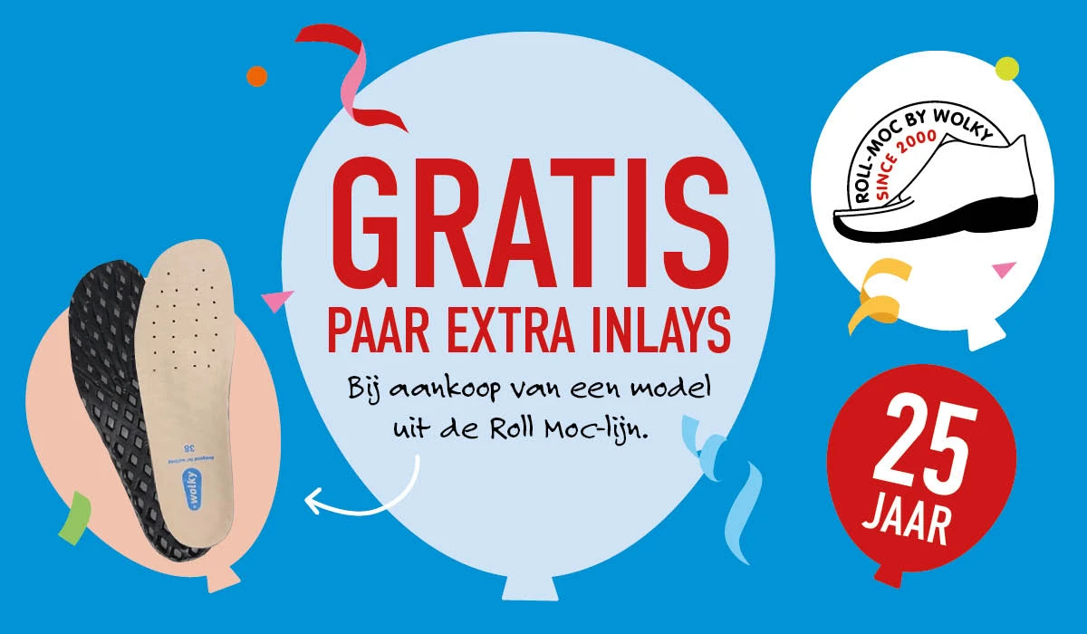 Krijg bij aankoop van een model uit de Roll Moc-lijn een gratis paar extra inlegzolen cadeau.