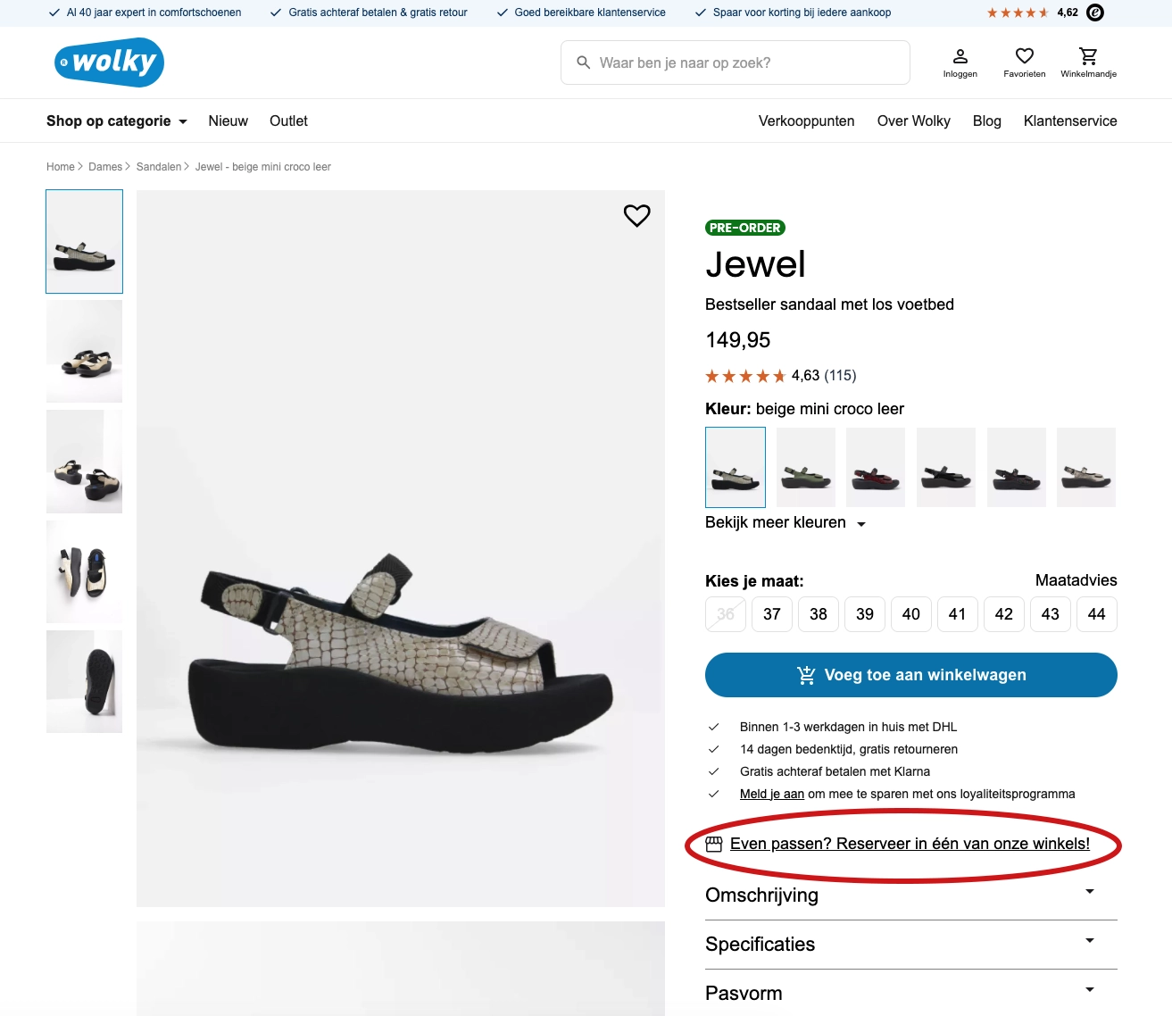 Passen in de winkel? Reserveer je schoenen via de website en ze staan in jouw maat en kleur voor je klaar in de Wolkyshop. Wel zo handig als je graag advies wilt of liever eerst past. Bekijk het stappenplan hieronder!